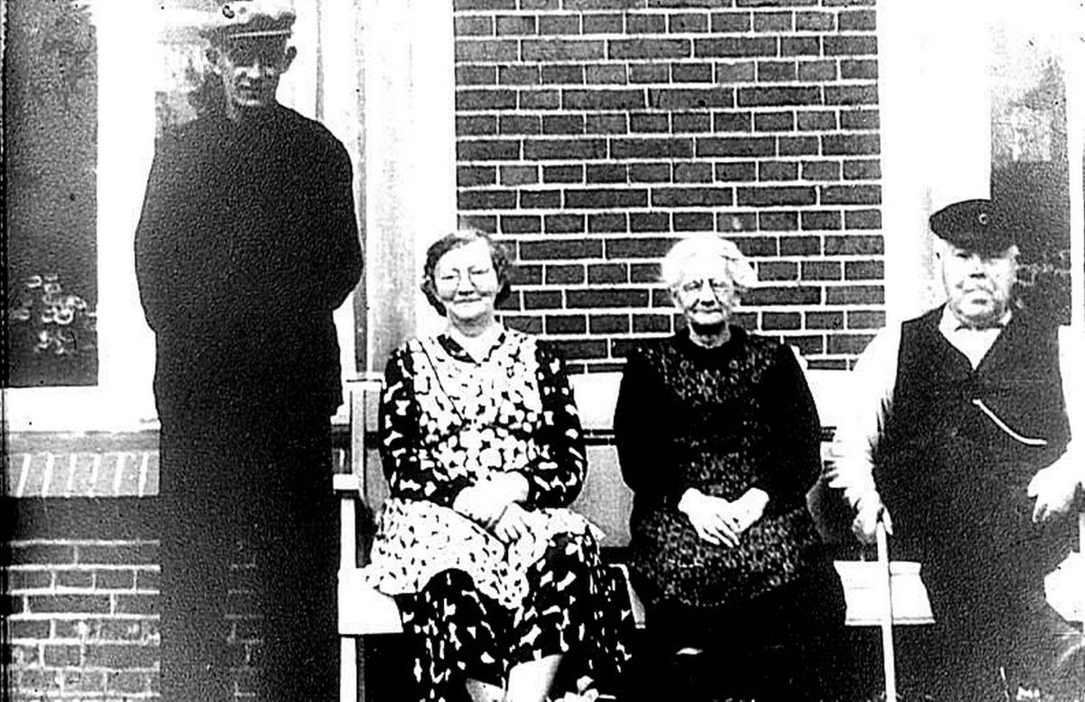 Gytsjerk. 1940-er jaren. 1e van links Thomas Bottinga - derde van links Sietske Kooistra-Miedema